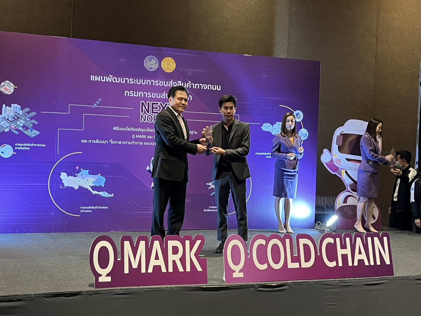 ได้รับรางวัล Q Mark จากกรมการขนส่งทางบก และได้เข้าร่วมสัมมนาในหัวข้อ “โอกาส ความท้าทาย และอนาคตของการขนส่งสินค้าทางถนนในประเทศไทย” ซึ่งจัดขึ้นในวันจันทร์ที่ 9 ตุลาคม 2566 ณ ห้องฟีนิกซ์ 12 ศูนย์แสดงสินค้าและการประชุมอิมแพ็ค เมืองทองธานี จังหวัดนนทบุรี